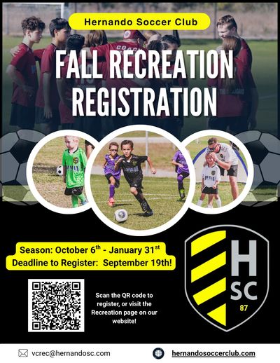 Join the fun this fall with Hernando Soccer Club’s Recreational Program – where players of all skill levels can learn the game, make new friends, and grow their love of soccer!